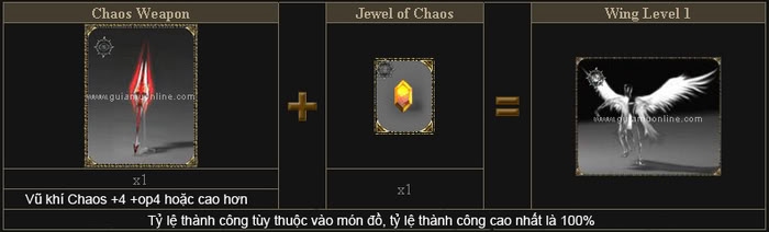 • + Vũ khí chaos có cấp độ +4 trở lên và có option tối thiểu là +4.